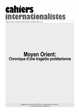 • Chronologie • La question palestinienne et le mouvement ouvrier international • Gaza, ou les prisons nationales • Israël et Palestine: Terrorisme d’Etat et défaitisme prolétarien • L’ennemi des prolétaires palestiniens est à Gaza City et à Jérusalem, à Tel Aviv comme à Aman, à Damas et à Beirut comme au Caire et à Tunis • Pour sortir de l’impasse ensanglantée du Moyen Orient • Guerres et trafiquants d’armes au Moyen Orient • L’alliance des bourgeoisies israélienne et palestinienne contre le prolétariat • L’islamisme, réponse réactionnaire et impérialiste après la clôture du misérable cycle bourgeois au Moyen Orient • Guerre totale au Moyen 0rient • Quelques considérations sur les Etats impérialistes, les Califats, les nations sans histoire, le pétrole et les Lager prolétariens • «Créatures» du capitalisme • Le bombardement continuel • Alep, ou du terrorisme impérialiste • Restes et putrefaction des «questions nationales» • Le Moyen Orient est un cimitière • De la Lybie à l’Iran, en passant par l’Irak. Luttes sociales et guerres impérialistes dans le contexte moyen-oriental • Le prolétariat palestinien dans le piège infâme du nationalisme • Notes à contre-courant sur le Hamas et le «mouvement palestinien» • Gaza: aucune illusion • Notre bibliographie essentielle