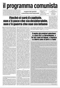 - Per lo sbocco proletario e classista della lotta delle masse oppresse palestinesi e di tutto il Medioriente(Il Programma comunista, n°14, 1982)
