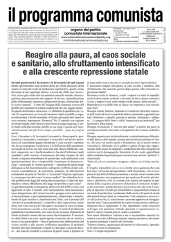 Editoriale: Reagire alla paura, al caos sociale e sanitario, allo sfruttamento intensificato e alla crescente repressione statale • Articoli: 1848-1871. Il proletariato e la strategia rivoluzionaria sullo scenario europeo • Ci risiamo! lo Stato non tollera la resistenza dei lavoratori! •A centocinquant’anni dalla Comune di Parigi • La rivoluzione comunista è la più radicale rottura con i tradizionali rapporti di proprietà • Coronavirus – Crisi – Resistenza • Una sentenza squisitamente politica. La legge è uguale per tutti. Ma a che cosa è uguale lo decidiamo noi • Libano. Davanti al baratro di una ennesima guerra, il proletariato è costretto a reagire agli attacchi dei lupi imperialisti e dei loro sciacalli locali